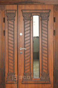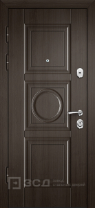 Эта модель отлично подойдёт для частных и загородных домов, где важно сохранить тепло и тишину в помещении даже в холодное время года. С обеих сторон полотно облицовано панелями МДФ с ПВХ-покрытием, которое устойчиво к влаге, солнечному свету и механическим повреждениям. Входная дверь в загородный дом №15 изготовлена из цельногнутой оцинкованной стали толщиной 1,5 мм и усилена рёбрами жёсткости. В конструкции предусмотрен терморазрыв коробки и полотна, предотвращающий промерзание и образование конденсата. Внутреннее заполнение из пенопласта повышенной плотности обеспечивает отличную тепло- и шумоизоляцию, а тройной магнитный контур уплотнения создаёт надёжную герметичность. Безопасность гарантируют два замка — сувальдный Просам и цилиндровый Мосрентген, дополненные противосъёмными штырями. Возможна индивидуальная отделка, установка стеклопакета, зеркала или декоративных элементов.